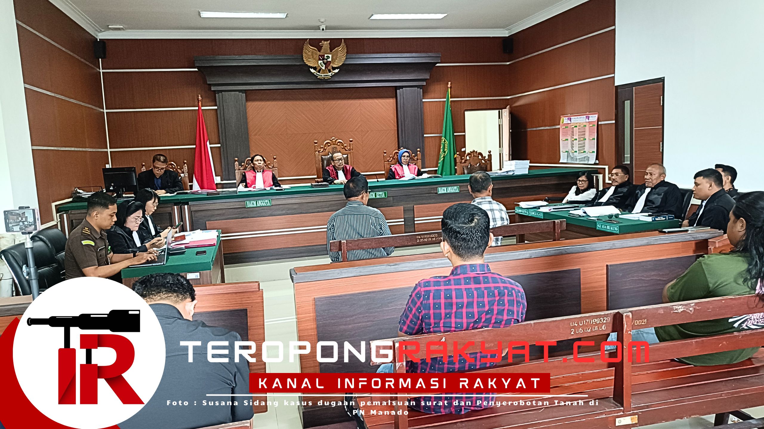 Manado, TeropongRakyat.com – Sidang lanjutan kasus dugaan pemalsuan surat dan penyerobotan tanah di Jalan Ringroad, Kelurahan Paniki Bawah, Kota Manado, milik keluarga Gunawan dengan terdakwa Margaretha Makalew, kembali digelar di Pengadilan Negeri (PN) Manado, Rabu (22/10/2025).