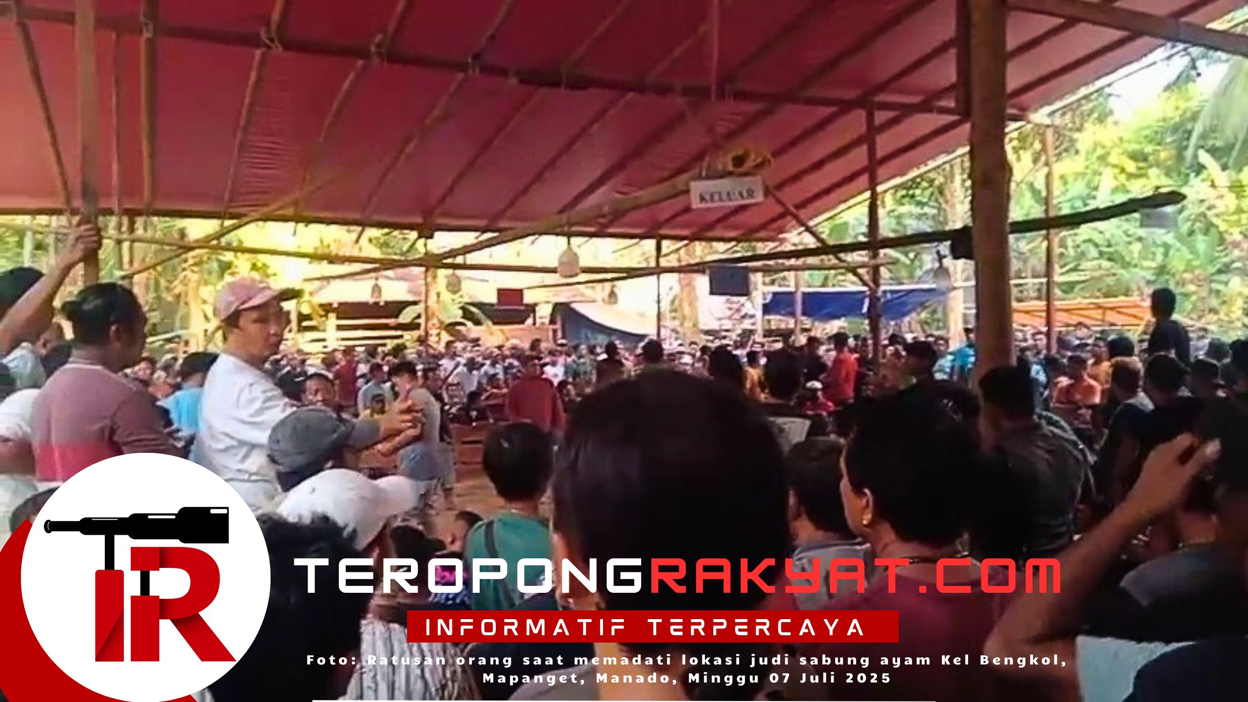Foto : Screenshot video saat ratusan orang berkumpul di lokasi judi sabung ayam di Bengkol, Mapanget yang diambil pada Minggu 27 Juli 2025 kemarin.