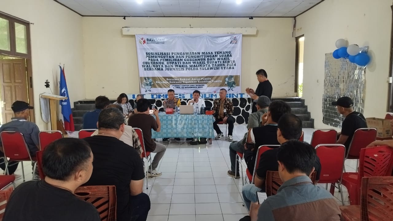 Acara tersebut digelar di Student Center GMKI Manado pada Jumat (22/11/2024) pagi, dengan mengusung tema “Pengawasan Massa Tenang, Pengumutan dan Perhitungan Surat Suara Pada Pemilihan Gubernur dan Wakil Gubernur, Bupati dan Wakil Bupati Kabupaten Serta Walikota dan Wakil Walikota Tahun 2024 Bersama Jurnalis Polda Sulut”.